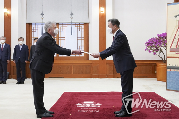 [제주교통복지신문 김대훈 기자] 문재인 대통령은 오늘 오후 청와대에서 10개국의 주한대사에 대한 신임장 제정식 후 주한대사들을 접견했다.