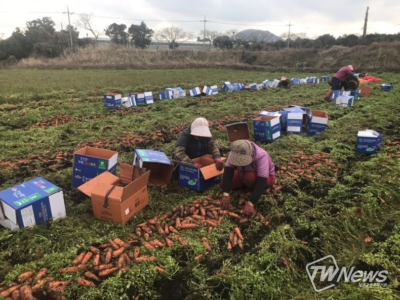 당근 수확, 세척, 배송은 구좌농협유통센터가 참여하며 오는 9일부터 순차적으로 이뤄질 예정이다.