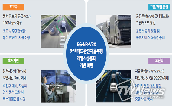 이는 군집주행, 원격주행 등 한층 고도화된 자율주행 서비스를 구현하는 데 필요한 기술이며, 세계 최초로 개발 및 실증을 목표로 한다는 점에서 향후, 우리나라가 세계 자율주행 차량통신 기술을 선도할 것으로 기대된다.