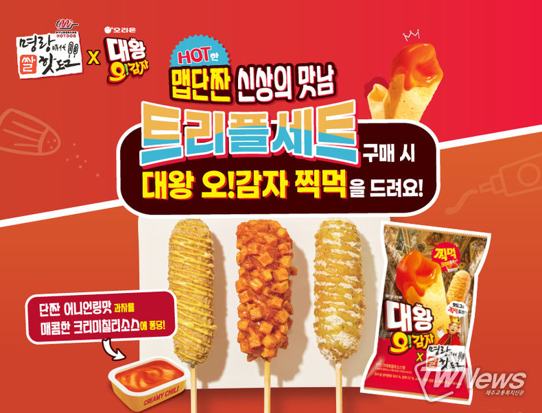 이번 콜라보레이션은 12월 말에 출시된 명랑핫도그 신제품 ‘트리플세트’ 구매 시 오리온 신상인 ‘대왕오감자’를 무료 증정하는 이벤트다.