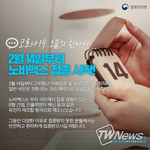 2월 14일부터 고위험군 자체접종 및 방문접종이 시작되며, 일반 국민은 전화 또는 SNS 예약으로 당일접종 가능합니다.