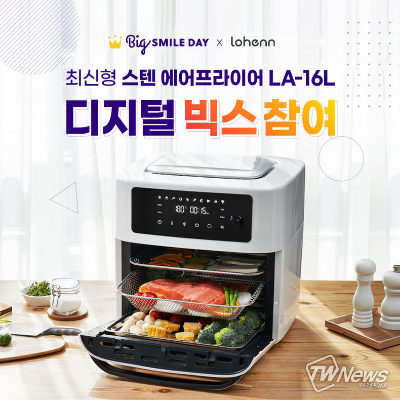 [제주교통복지신문 신혜정 기자] 생활가전 브랜드 로헨(Lohenn)이 이베이에서 주관하는 G마켓, 옥션 ‘디지털빅세일’ 행사를 통해 22년 업그레이드된 스텐 대용량 에어프라이어 LA-16L를 합리적인 가격에 판매한다고 밝혔다.