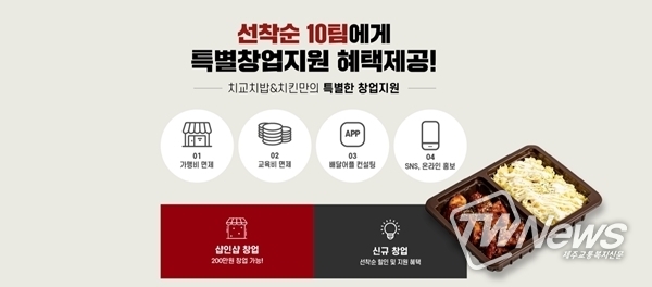 [제주교통복지신문 김지홍 기자] 치킨 프랜차이즈 ‘치교치밥&치킨’이 선착순 10팀 한정 특별창업 프로모션을 진행한다.