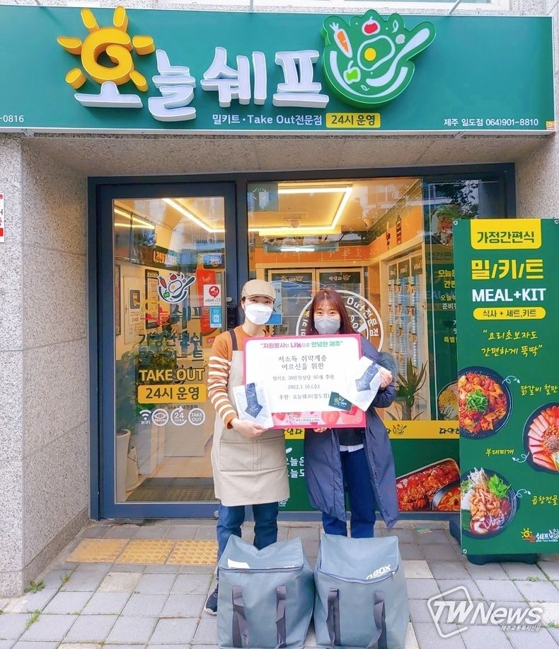 [제주교통복지신문 김현석 기자] ‘오늘쉐프 일도점-밀키트 전문점(대표 현주)’과 제주시자원봉사센터(센터장 이승희)가 함께 거동이 불편하고 사정이 어려운 어르신들께 밀키트(30만원 상당) 나눔을 진행했다.