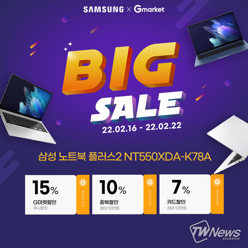 [제주교통복지신문 신혜정 기자] 삼성 공식 파트너 ㈜코인비엠에스는 윈도우11 기본 탑재 ‘삼성노트북 플러스2 NT550XDA-K78A’를 대상으로 오는 22일(화)까지 G마켓에서 열리는 신학기 맞이 ‘디지털 가구 빅세일’기획전에 참여한다고 밝혔다.