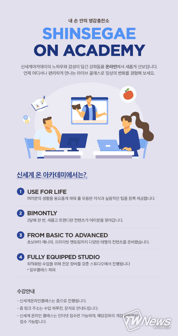 [제주교통복지신문 신혜정 기자] 신세계백화점이 '신세계 온 아카데미'를 열고 봄학기 온라인 수강생 모집에 나섰다.