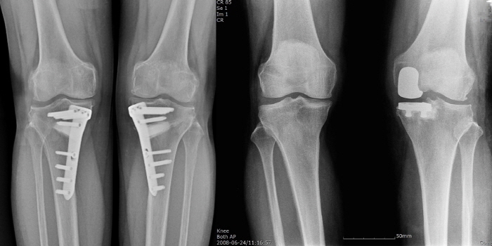 따라서 젊은 퇴행성 관절염 환자들은 전체 치환술 대신 ‘부분 인공관절 치환술’과 ‘근위경골 교정절골술’을 적용하는 것이 좋다. 부분 인공관절 치환술은 말 그대로 관절의 일부만을 인공관절로 교체하는 수술을 말한다. 일부만 교체하기 때문에 손상된 부위가 아닌 건강한 부분은 보존이 가능하다. 수술 시 절개와 출혈이 적고 일상 회복이 빠른 편이며, 수술 이후에도 관절 운동의 각도를 살릴 수 있다. 또한 비교적 활동성이 적고, 통증이 심한 환자, 빠른 수술 회복을 원하는 환자들에게 적용해볼 수 있다.