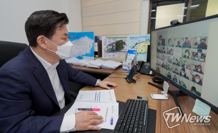 주요 현안으로는 △제주특별자치도 강소권 발전전략 수립·제출 △2022년 지역안전지수 시행계획 수립 추진 △통합문화이용권사업 이용 활성화 추진 △대정부 절충을 통한 관광시장 회복 동력 확보 △건설현장 긴급 안전점검 △제주형 통합 물관리 체계 구축 △2021년산 만감류 소비 촉진 시책 추진 등이 논의됐다.