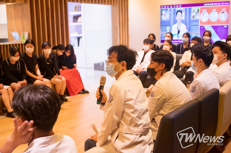 “최근 피부미용시장에서는 다양하고 폭넓은 주제를 다루는 새로운 기술과 제품이 출연하고 있습니다. 차앤유는 끊임없이 발전하기 위해 600여회 이상의 국내외 학회 활동, 강연을 진행합니다. 미국, 중국, 일본, 러시아 등 세계 각국의 의료진을 대상으로 100여회 교육 및 세미나를 진행하고 있습니다.”