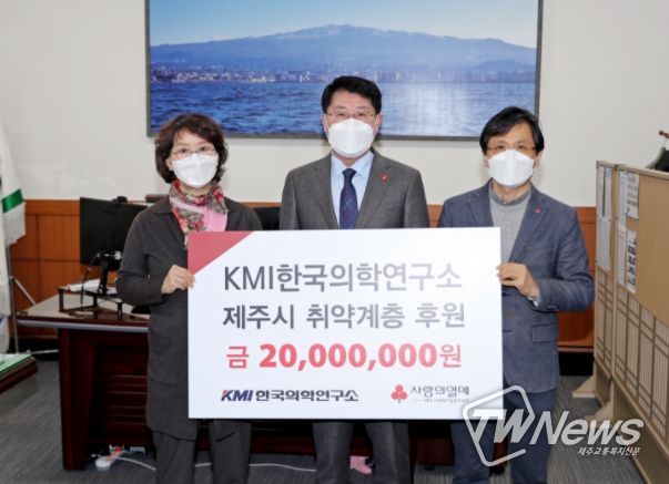 [제주교통복지신문 김현석 기자] 제주시는 KMI한국의학연구소에서 02월 24일, 제주시청 시장 집무실을 방문해 성금 2,000만원을 기탁했다고 밝혔다.