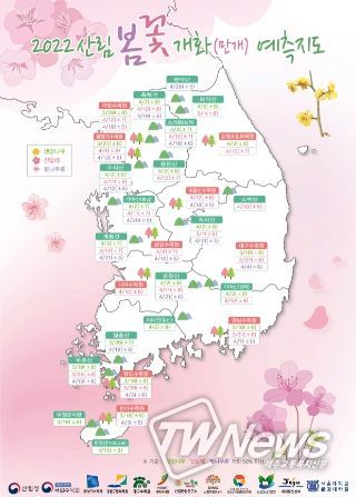 [제주교통복지신문 김대훈 기자] 국립수목원은 우리나라 전국 주요 산림에 자생하는 식물의 올해 봄꽃 개화(만개) 예측지도를 발표했다.