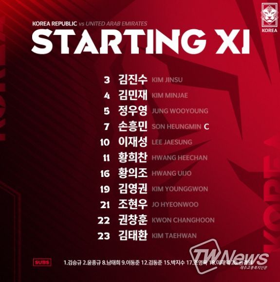 벤투 감독은 지난 이란전과 비교해 골키퍼만 바꿨다. 김승규 대신 조현우가 이날 골대를 지켰다. 나머지 멤버는 그대로였다. 포백 수비진은 김진수-김영권-김민재-김태환으로 구성됐다. 중원은 이재성, 정우영, 권창훈이 맡는다.