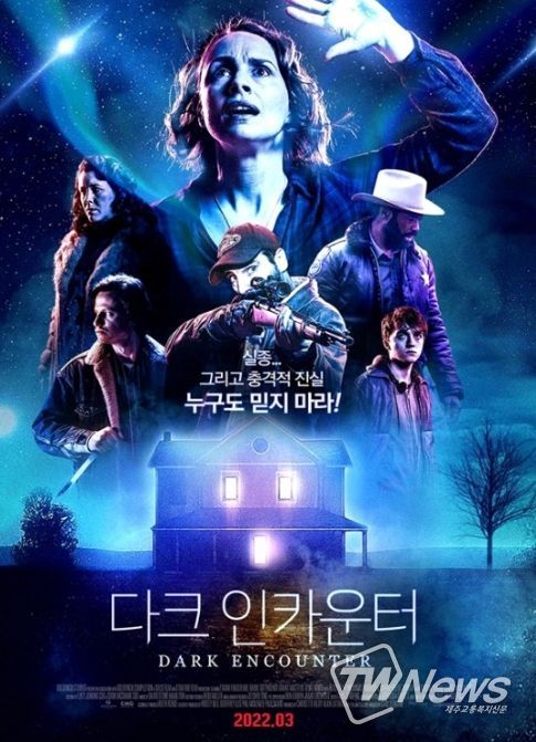 '다크 인카운터'의 개봉 소식과 함께 공개된 포스터는 어두운 밤 미지의 빛이 외딴 집을 비추고 무언가 두려움 가득한 배우들의 표정이 시선을 사로잡는다.