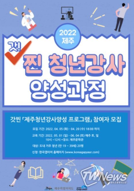 [제주교통복지신문 김현석 기자] 제주특별자치도는 강연을 직업으로 삼고자 하는 제주청년을 위해 ‘갓찐(값진) 제주청년강사양성 프로그램’을 4월부터 본격 추진한다.