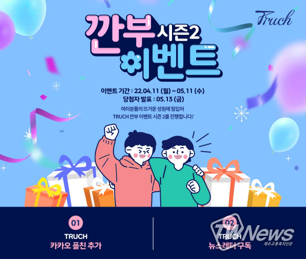 [제주교통복지신문 김현석 기자] 국내 인터넷 스포츠 신문 TRUCH(이하 트러치)에서 깐부 이벤트 시즌2 ‘우리 아직도 깐부 아니니?’ 이벤트를 11일부터 오는 5월 11일까지 진행한다고 11일 밝혔다.