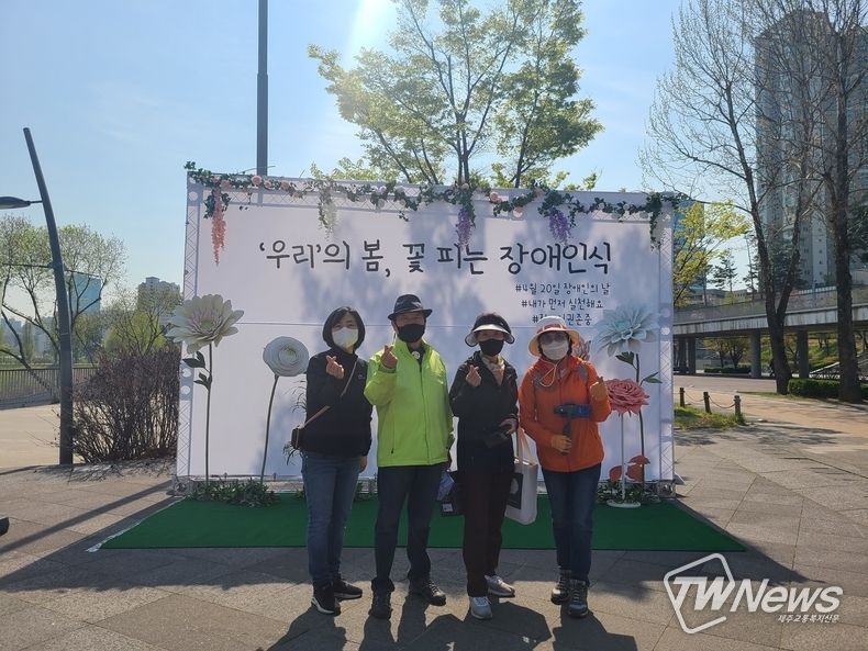 [제주교통복지신문 김현석 기자] 수원시장애인종합복지관(관장 한해영)은 2022년 장애인의 날을 맞이해 장애인에 대한 인식개선 및 차별 경감을 목적으로 지역주민과 함께하는 장애인식개선 캠페인 <‘우리’의 봄, 꽃 피는 장애인식>을 지난 16일 10시부터 15시까지 지역주민 500여명을 대상으로 광교호수공원 어반레비에서 진행했다.