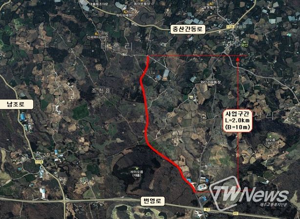 해당 사업은 조천읍 대흘리와 와산리를 연결하는 농어촌도로로서, 사업 연장은 약 2㎞로 기존 비포장 농로(3~4m)를 10m 폭원으로 확·포장한다.