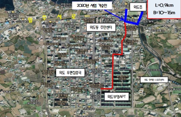 본 사업지의 대상지인 외도초~외도부영APT 지역은 외도 주거지와 외도초 주요 통학로로 많은 유동 인구에 비해 보행로 및 안전시설이 부족해 위험을 초래하고 있다.
