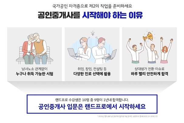 [제주교통복지신문 김지홍 기자] 공인중개사 교육 브랜드 랜드프로가 초보 수험생을 응원하는 마음을 담아 ‘2022 공인중개사 입문서+입문강의 100% 무료배포 이벤트’를 진행한다고 29일 밝혔다.