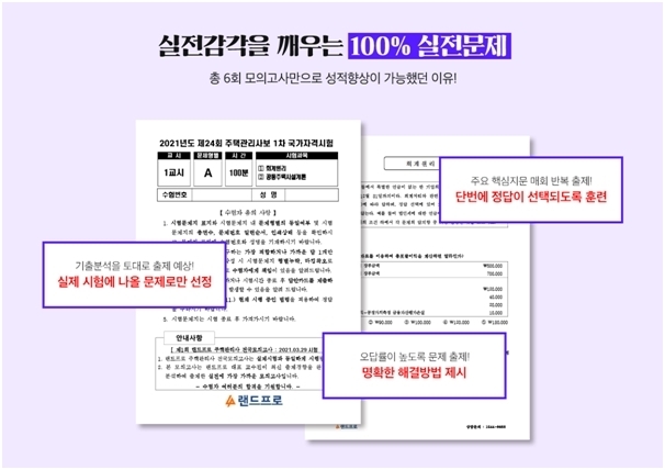 랜드프로 교수진은 주택관리사 자격증 시험 일정에 대비해 최신 기출분석, 출제유형을 토대로 출제예상문제를 선정했다. 또 오답률이 높은 문제를 출제해 문제의 명확한 해결 방법을 제시하며 정답 선별 능력을 기르는 데 도움을 준다.