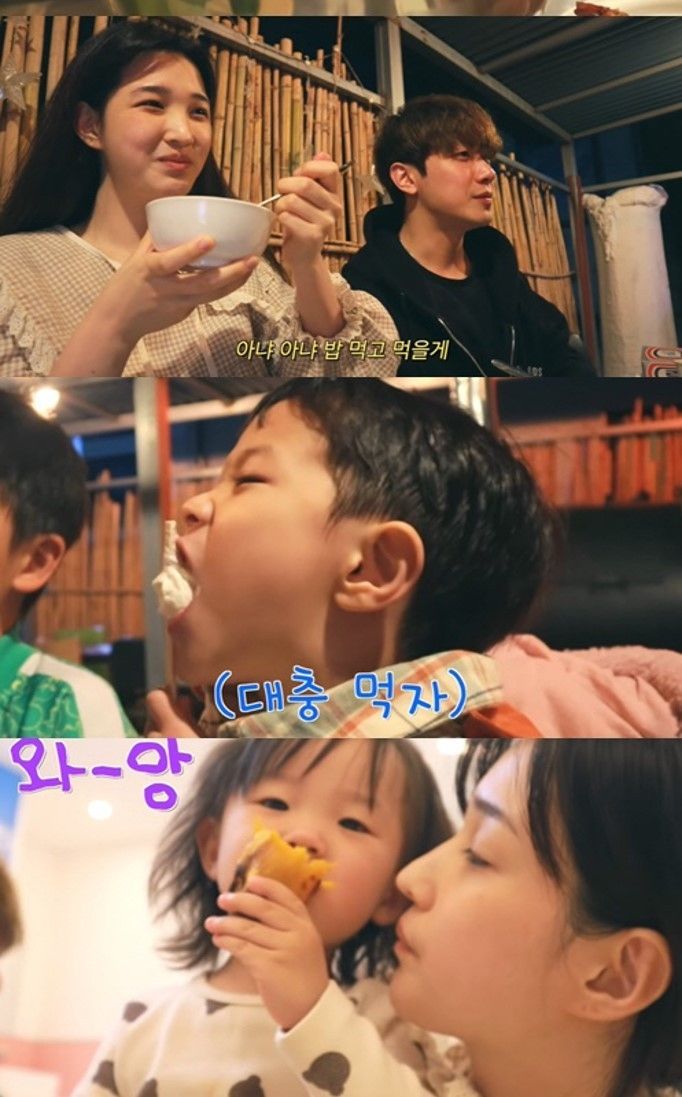 숙소에 도착한 율희는 물놀이를 마치고 아이들의 밥을 챙겼다. 그사이 다른 가족들은 바비큐 파티를 준비했다. 율희는 "부모님이 저 어렸을 때부터 캠핑 여행을 많이 다녀서 준비를 철저하게 해 오셨다"며 "저희는 옷만 가져왔다. 나머지는 엄마 아빠가 다 준비하셨다"고 말했다.
