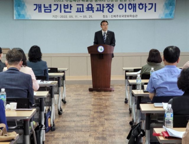 이번 연수는 2022 개정 교육과정에서 단순한 사실적 지식 습득의 차원을 넘어 개념을 기반으로 학습의 깊이를 더하고 미래역량 함양을 위한 개념기반 교육과정에 대한 이해를 통해 학교장들이 미래교육을 위한 수업 설계 및 컨설팅 전문성 함양을 하고자 하는 자발적인 요구가 있어 우리 교육청에서 지원하게 되었다.