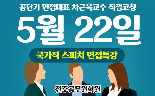 [제주교통복지신문 김지홍 기자] 전주공무원학원에서 2022년 9급 국가직 면접을 앞두고 오는 22일 면접특강 및 스피치 면접까지 함께 진행할 예정이라고 13일 밝혔다.