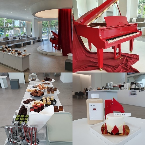 ‘피스인더커피’는 약 140평의 넓은 매장으로 1, 2층이 나뉘어 있고, 홀 중앙에는 빨간색 그랜드 피아노가 배치돼 있다. 자동 연주 피아노로 클래식 음악이 연주되고 있어 이색적인 분위기를 제공한다.