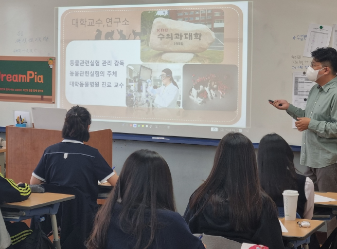 그는 강의를 통해 수의사라는 직업에 대해 명확히 알리고 어느 영역에서 활동할 수 있는지에 대하여 설명했다. 이와 더불어 수의사가 되기 위해 반드시 거쳐야 하는 과정과 필요한 역량을 제시하는 등 해당 분야로 나아가고자 하는 학생들에게 실질적인 지식을 전하였다.