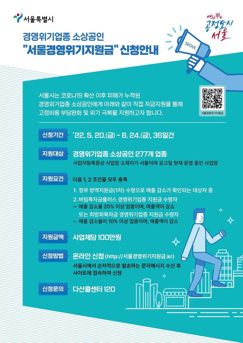 [제주교통복지신문 이소민 기자] 서울시는 코로나19 장기화로 매출은 감소했지만, 집합금지·영업제한 대상이 아니라는 이유로 그동안 정부 손실보상을 ‘제대로’ 받지 못했던 277개 경영위기업종 소상공인들에게 ‘경영위기지원금’으로 현금 100만원을 지급한다고 20일 밝혔다.
