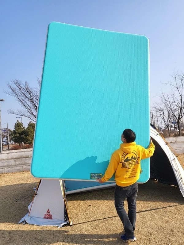 가정에서도 아이들이 방방이로 사용할 만큼 내구성도 좋아서 캠핑뿐 아니라 층간소음 방지 매트로의 역할도 하고 있다. 캠핑 및 카라반, 루프탑텐트에도 사용할 수 있는 다양한 사이즈뿐 아니라 고객이 요청하는 사이즈를 제작해서 만들어주는 주문제작 시스템까지 갖췄다.