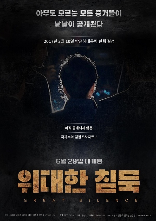 이런 추세를 이어 오는 29일, 박근혜 대통령 탄핵 과정을 주제로 한 최신 다큐영화 <위대한 침묵>이 개봉한다.