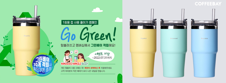 더불어 다회용품 사용 활성화를 위해 개인 컵 사용 시 200원 할인 혜택에 그린베이(스페셜 스탬프)까지 적립해주는 ‘Go Green 캠페인’을 통해 지속 가능한 발전에 기여하고 있다.