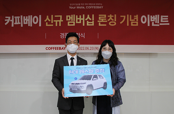 [제주교통복지신문 김대훈 기자] 커피베이가 서울 소재 본사에서 멤버십 리뉴얼 기념 ‘캐스퍼를 잡아라’ 이벤트 당첨자를 초청해 캐스퍼 증정식을 했다고 28일 밝혔다.
