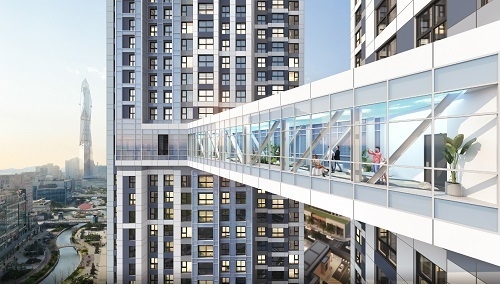 랜드마크 단지로서의 상품성도 눈길을 끈다. 최고 46층의 초고층 단지로 조성되며, 품격을 더해줄 스카이브릿지가 단지 3개 동을 하나로 연결하는 독특한 형태로 계획돼 있다. 최상층에는 펜트하우스가 조성될 예정으로, 내부에 이탈리아 몰테니 사의 하이엔드 가구 브랜드인 다다(Dada)가 주방가구로 설치되는 등 세심한 부분 하나까지 신경을 써 고급스러움을 극대화했다. 각종 가전제품 등이 무상으로 제공되는 것도 경쟁력을 더한다.