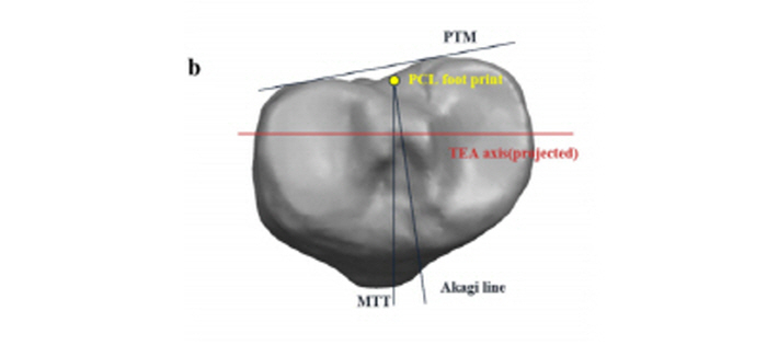 한편 연세사랑병원 인공관절 연구팀은 이런 현상을 해결하기 위해 환자 977명의 3D MRI 데이터를 기반으로 연구를 진행했다. 그 결과 경골 인공관절 삽입의 정확한 위치는 경골 결절 내측 3분의 1지점이라는 결론을 도출했다.