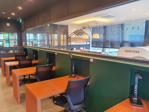 이번에 오픈하는 멘토즈 녹산신호점은 좌석당 차지하는 책상 너비를 최대로 하여 사용자 편의성을 높이고, 이동 동선까지 고려한 인테리어로 학습자들이 최대한 공부에 방해받지 않도록 배려했다.