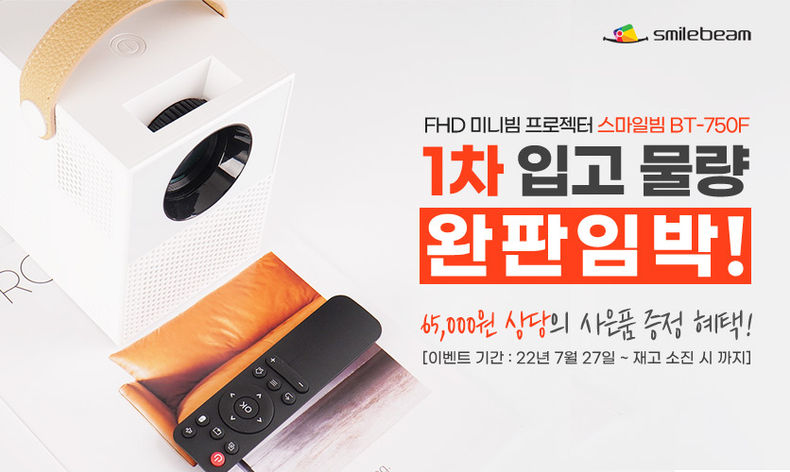 [제주교통복지신문 박희찬 기자] 주식회사 빔테크(대표 박경혜)의 미니빔프로젝터 전문 브랜드 ‘스마일빔’이 선보인 BT-750F의 1차 입고 물량이 좋은 반응을 얻으며, 조기 마감이 임박했다고 27일 전했다.