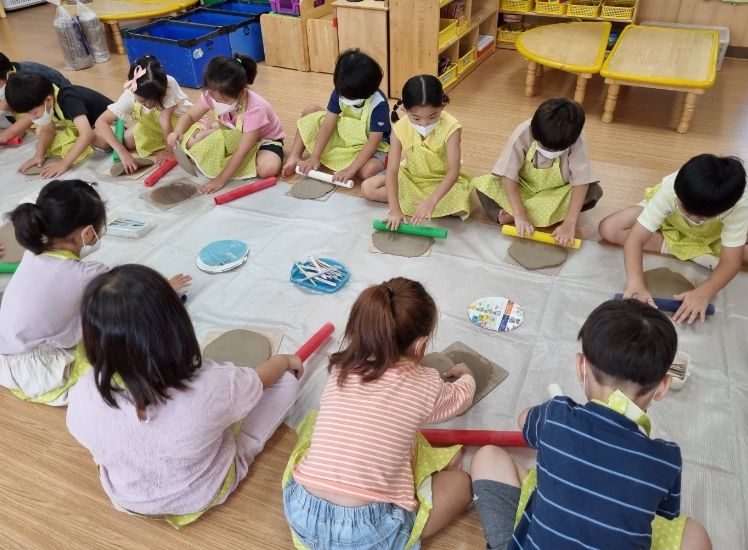 ‘찾아오는 흙놀이 체험활동’은 도자기 흙을 이용하여 나만의 접시를 만드는 활동으로 진행됐다. 유아들은 흙을 직접 만져보며 흙의 촉감, 색깔, 성질 등을 탐색했으며, 흙을 접시모양으로 빚고 무늬를 새기며 자신의 감성을 맘껏 표현하는 시간을 가졌다.