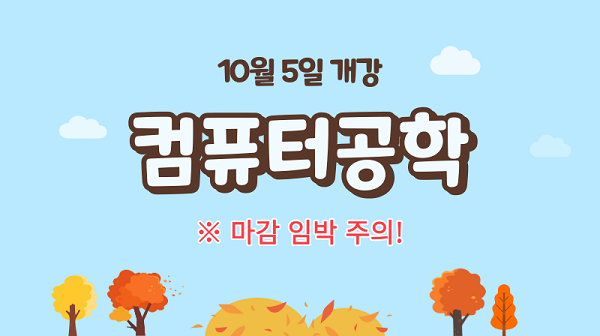 컴퓨터공학 과정은 오프라인 출석이나 실습이 없어 시간적 여유가 없는 사람도 학위취득에 도전할 수 있다. 10월 개강반은 최대 장학 혜택으로 부담 없이 자격증 취득이 가능하다.