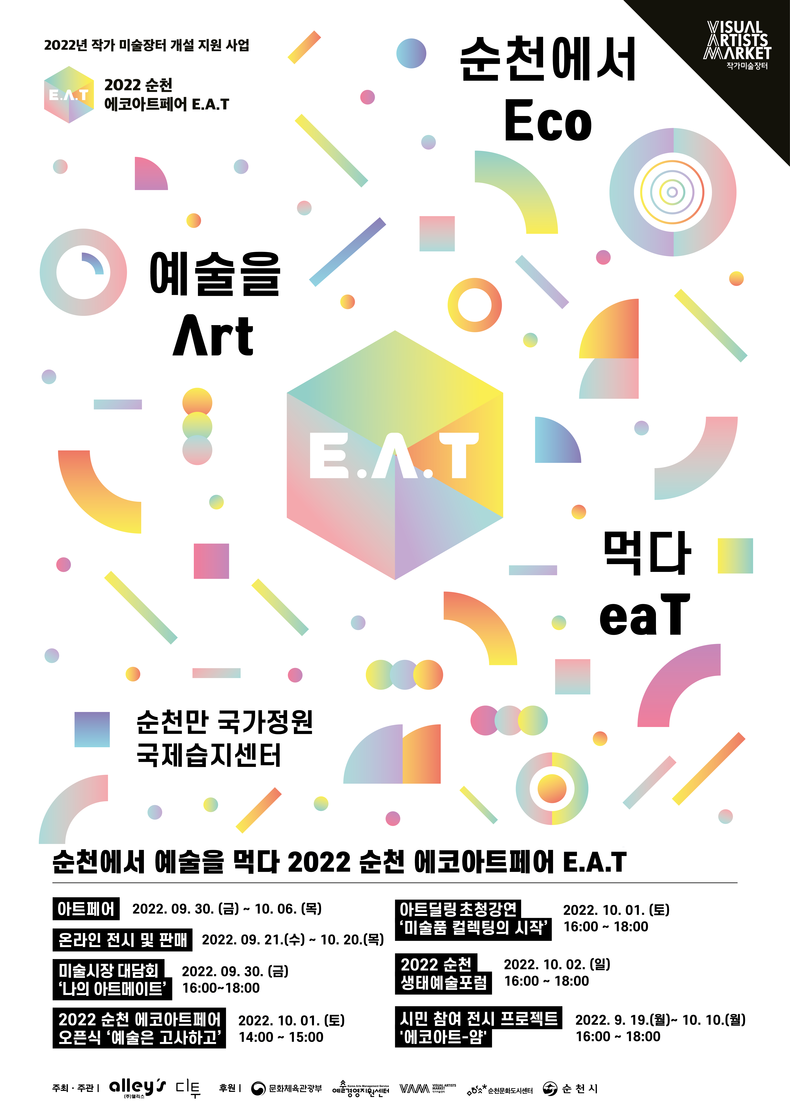 [제주교통복지신문 이청 기자] ‘순천에서 예술을 먹다’라는 주제로 열리는 미술장터 「순천에코아트페어 E.A.T.」가 오는 9월 30일부터 10월 6일까지 순천만국가정원 내 국제습지센터(서문)에서 개최된다.