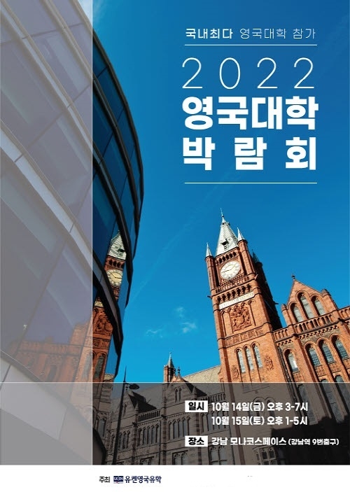 [제주교통복지신문 이소민 기자] 60개 영국대학교 공식 에이전트인 ㈜유켄영국유학이 10월 14~15일 ‘2022 영국대학박람회’를 주최한다고 29일 밝혔다.
