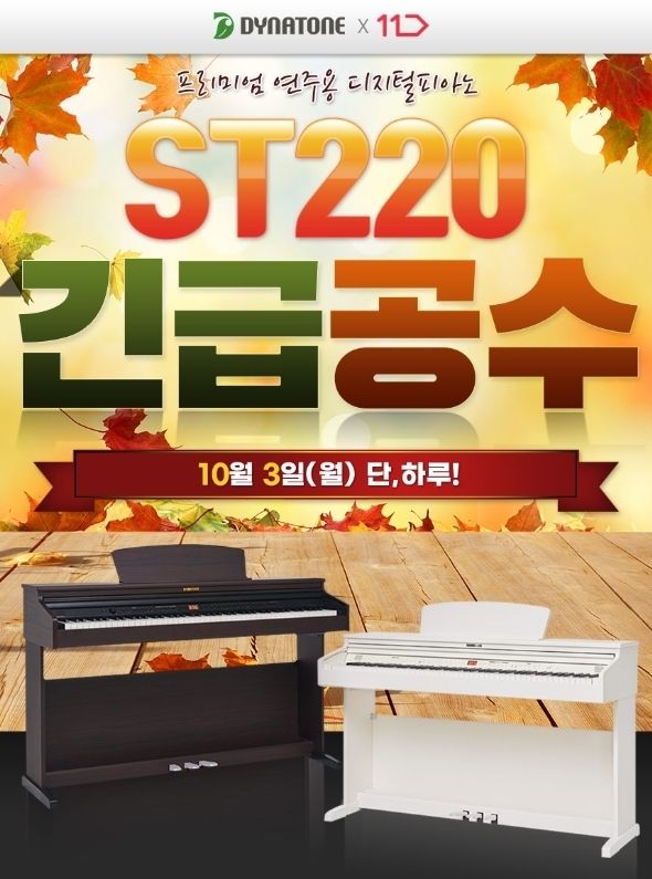 [제주교통복지신문 이소민 기자] 종합악기 전문 브랜드 다이나톤이 10월 3일(월) 단, 하루 11번가에서 가을 시즌 맞이 베스트셀러 디지털피아노 ST220의 행사를 한정 수량으로 진행한다고 30일 밝혔다.