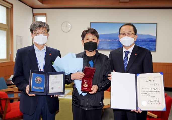 [제주교통복지신문 김현석 기자] 강병삼 제주시장은 6.25 참전유공자 故 박춘복 참전용사 유족에게 무성화랑 무공훈장을 전수했다.