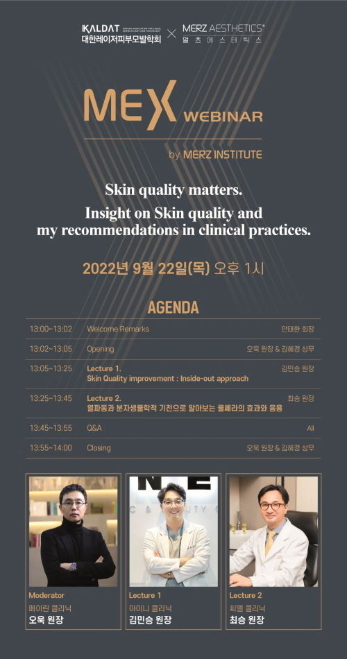 [제주교통복지신문 이소민 기자] 멀츠 에스테틱스(대표 유수연, 이하 멀츠)가 대한레이저피부모발학회(회장 안태환 프레쉬이비인후과 원장, 이하 대피모)와 함께 정기 학술 교육 프로그램 'MEX(Merz Experts) Webinar(이하 멕스 웨비나)'를 성료했다고 11일 밝혔다.