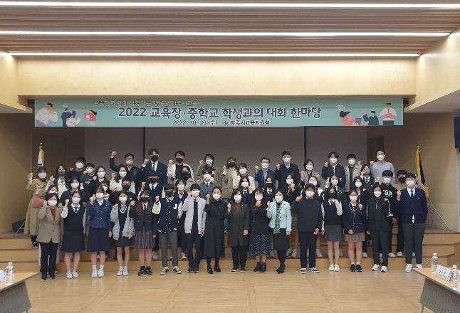 [제주교통복지신문 박희찬 기자] 제주시교육지원청은 10월 26일, '학생 참여 학교문화 조성'이라는 주제로 제주시 관내 30개 중학교 학생대표들과 함께 학교별 자치활동 우수사례를 사례를 공유하고 의견을 청취하는 소통의 시간을 가졌다.