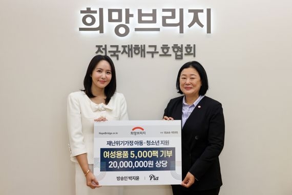 김정희 희망브리지 사무총장은 “박지윤님은 재난 때마다 피해 이웃들의 일상 회복을 위해 성금을 내주셔왔다. 이번 여성용품을 생산하고 기부에도 함께한 토투컴퍼니와 박지윤님께 감사하다”고 말했다.