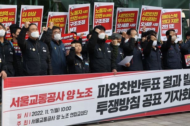 앞서 서울교통공사 노조는 "서울시와 공사의 입장이 변화하지 않으면 조만간 파업이 불가피하다"며 투표 인원 대비 79.7%의 찬성률로 총파업을 가결했다. 양대 노조의 동반 파업은 성과연봉제 도입 반대를 내걸었던 2016년 이후 6년 만이다.