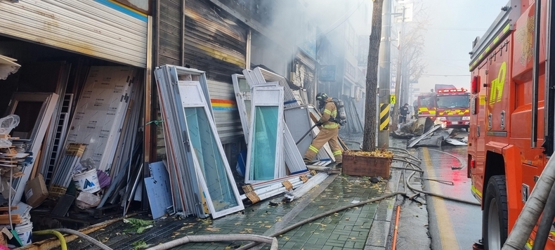 충북 제천에 위치한 한 건축자재 매장에서 화재가 발생했다.