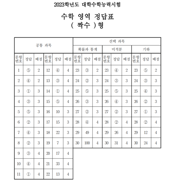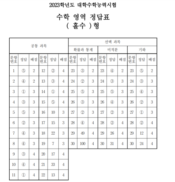 17일 2023학년도 대학수학능력시험이 치러지고 있는 가운데 2교시 수학 영역 정답이 공개됐다.